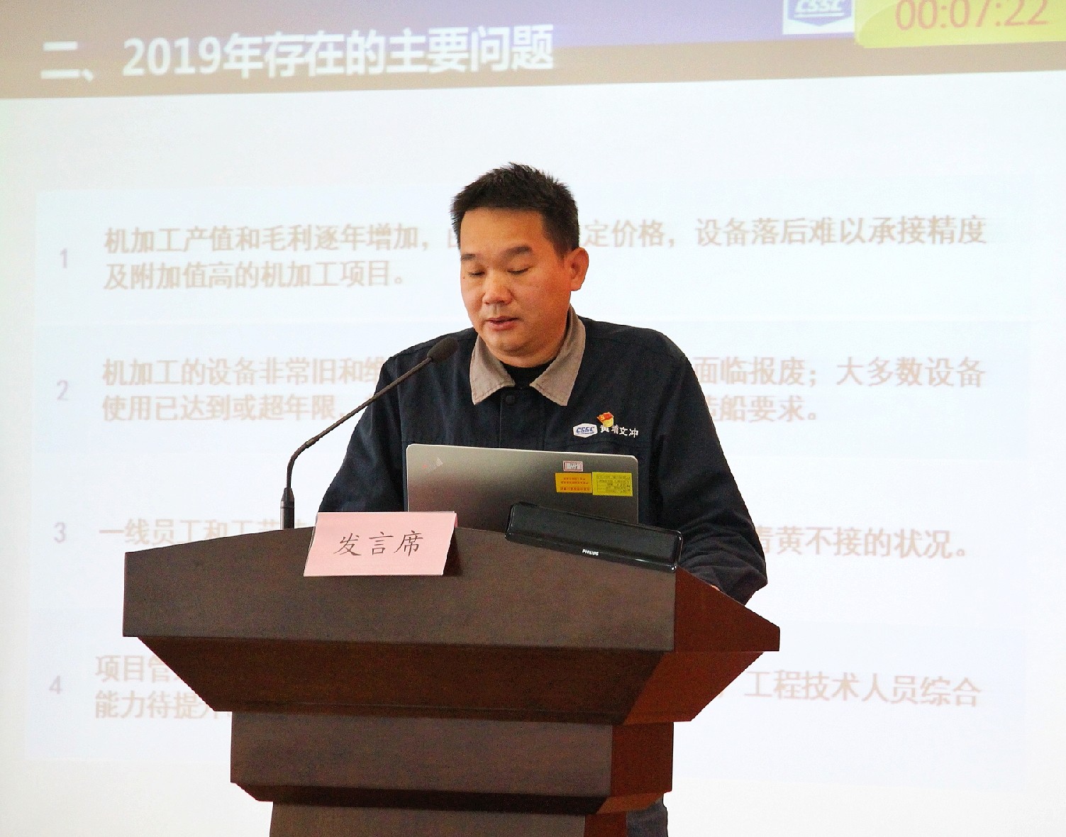 經(jīng)營(yíng)部、技術(shù)開發(fā)部、配套部、風(fēng)電工程部、舾裝工程部、海洋工程部、機(jī)加工部7個(gè)部門在會(huì)上就貫徹落實(shí)公司會(huì)議精神作了發(fā)言。