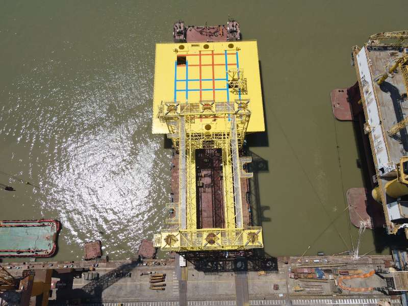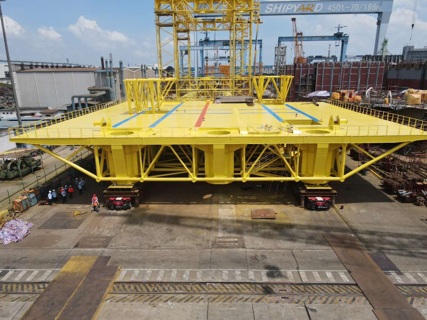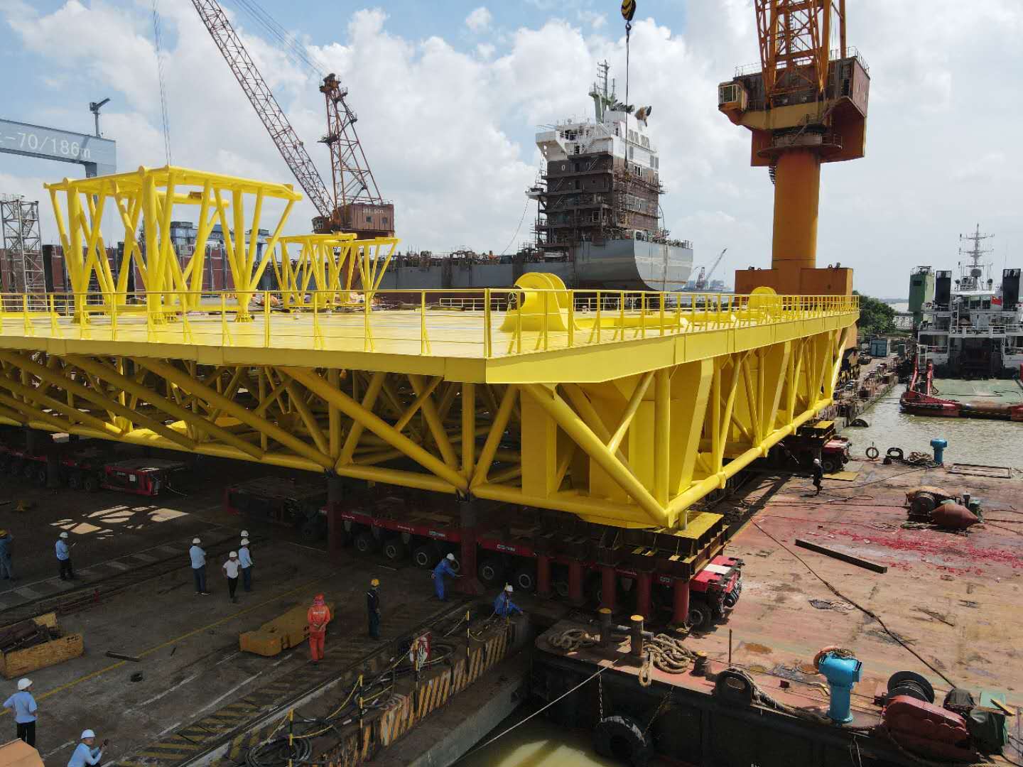 7月12日下午2點(diǎn),隨著保利長(zhǎng)大多樁穩(wěn)樁平臺(tái)項(xiàng)目第4套導(dǎo)向架順利完成滾裝裝船工作,標(biāo)志該項(xiàng)目順利完工。保利長(zhǎng)大多樁穩(wěn)樁平臺(tái)項(xiàng)目施工過(guò)程中,為了滿足業(yè)主生產(chǎn)需求,公司把第3套上平臺(tái)和第4套導(dǎo)向架結(jié)構(gòu)件放在公司位于東莞的中遠(yuǎn)廠區(qū)進(jìn)行制作及總組。