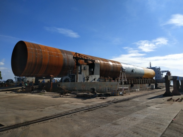 7月15日凌晨兩點多,歷經(jīng)1小時50分鐘的滾裝,中廣核后湖單樁項目首套單樁——77#樁的裝船作業(yè)于4點15分順利完成,第二套73#樁也于7月25日上午11點左右完成裝船交付,標(biāo)志著中廣核后湖單樁項目首批單樁的生產(chǎn)交付任務(wù)全部完成!