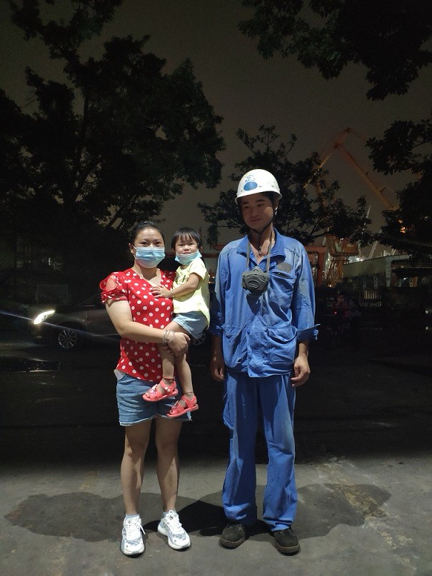 海洋工程部昌成泰李隊(duì)裝焊三班的船體裝配工李康也在加班加點(diǎn),他的妻子帶著兩歲多的孩子來看他。在妻子的心中,李康不太愛說話,哪怕上半年項(xiàng)目忙碌的時(shí)候經(jīng)常加班到深夜才回家,他也沒在家人面前抱怨一句。