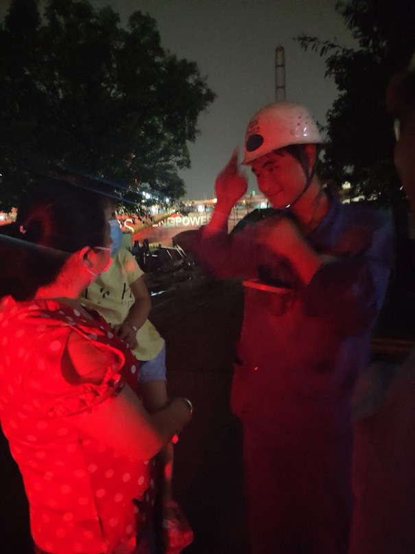 到了現(xiàn)場,面對(duì)妻兒的突然現(xiàn)身,帶著安全帽和防塵口罩的魯雄信眼中閃過驚喜。他正在加班趕項(xiàng)目,手上還拿著工具,一家三口湊在一起,小聲地說了幾句話。離開時(shí),魯雄信沒有擁抱他們,只把手放在孩子身后,虛扶著他回到媽媽的懷里。走出了魯雄信的視線范圍,他的妻子一手拉著孩子,一手抹眼淚,“環(huán)境太艱苦了,他太辛苦了……”