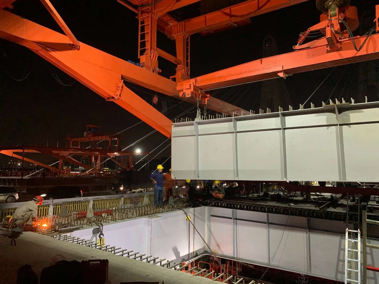10月12日,隨著洛溪大橋拓寬工程主橋安裝現(xiàn)場的鞭炮聲響起,主橋左幅的橋面吊機把最后一個鋼箱梁合攏分段起吊,經(jīng)過48小時連續(xù)作業(yè),合攏段結(jié)構(gòu)焊縫全部驗收完工,交付給下一道工序,為完成洛溪大橋年底通車目標(biāo)奠定了堅實的基礎(chǔ)。