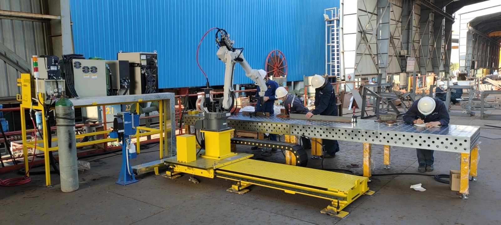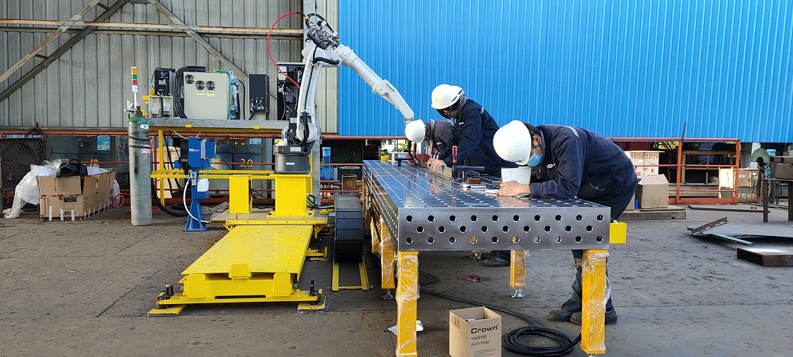 目前,公司具備直梯專項焊接機器人、電纜托架專項焊接機器人、一套固定多用途焊接機器人、一套帶軌道自動焊接機器人,可以焊接多種規(guī)格(6米以內(nèi))的工件。從應用自動化設備以來,焊接效率提升了200%,焊接質(zhì)量合格率接近100%。這也對周圍整日埋頭干活的一線操作人員帶來了沖擊,潛移默化中讓他們對學習新事物有了更好的接受心態(tài)。