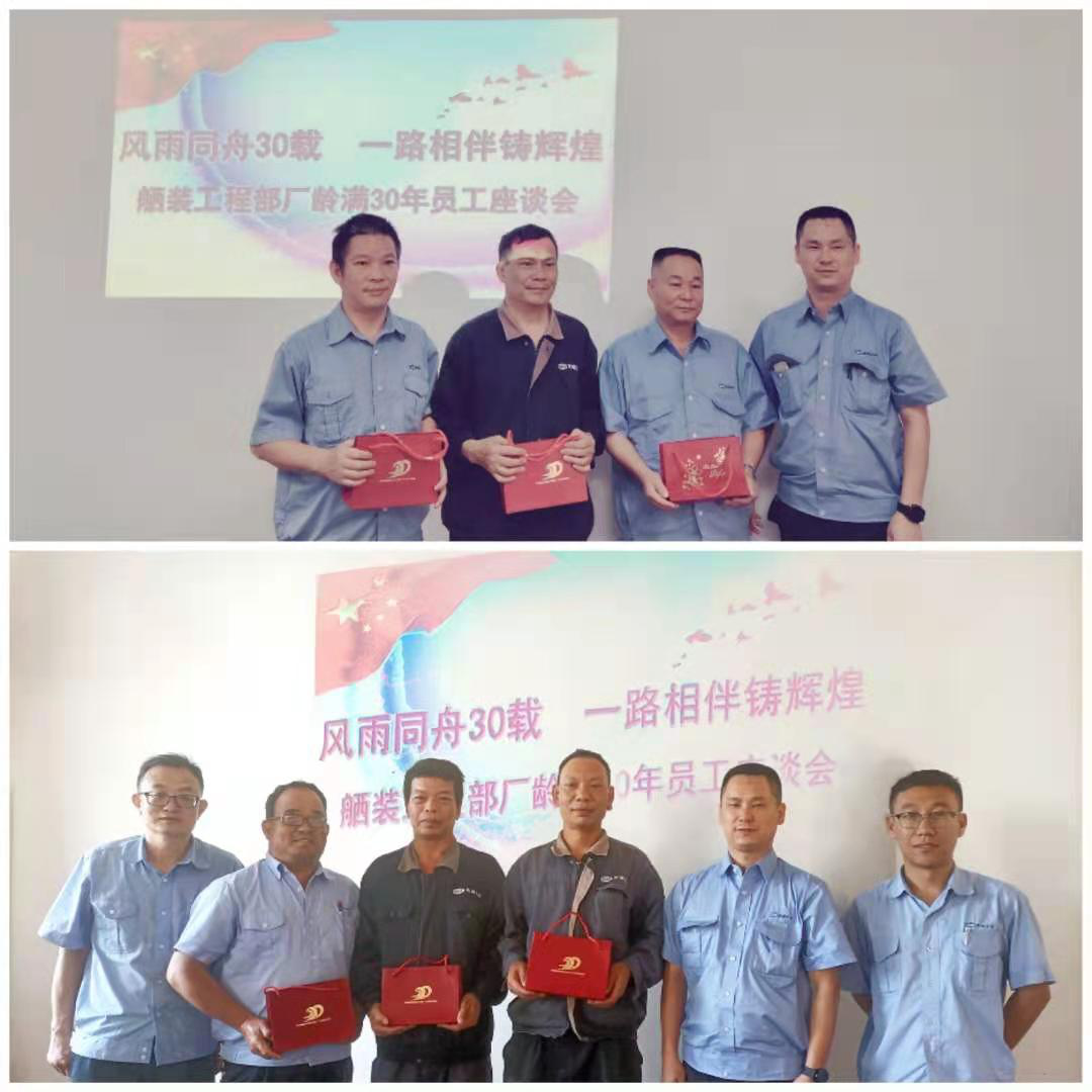 4月,公司各黨支部陸續(xù)組織開展“風雨同舟三十載,一路相伴鑄輝煌”連續(xù)廠齡滿30年員工座談會,結(jié)合黨史學習教育,為連續(xù)廠齡滿30年的老員工頒發(fā)建廠170周年紀念章,對他們忠于職守、愛崗敬業(yè)、為公司發(fā)展樂于奉獻的精神表示感謝。