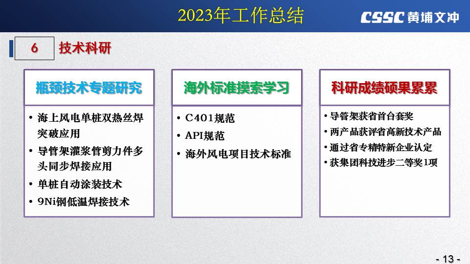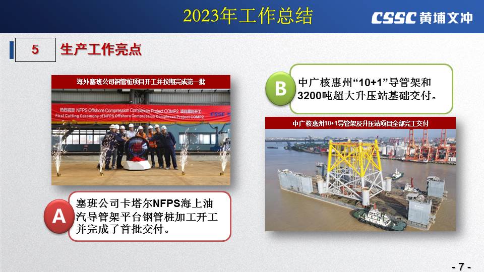 七、進一步明確發(fā)展方向,在抓好海外訂單落地的同時,多元化承接相關(guān)產(chǎn)品,如壓力容器、深海養(yǎng)殖平臺等,要組織工作專班團隊跟進新產(chǎn)品市場開拓和工藝技術(shù)攻關(guān)。